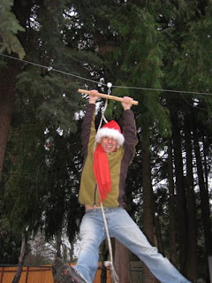 This is hardly aberrant behavior for me (as well as the sum total of my holiday spirit), so I continued scouting around for something new. And, like Dorothy in The Wizard of Oz, I found it in my own backyard. Or my neighbor's yard, to be precise. Inspired by his own trip to Costa Rica, Sam installed a zip line.